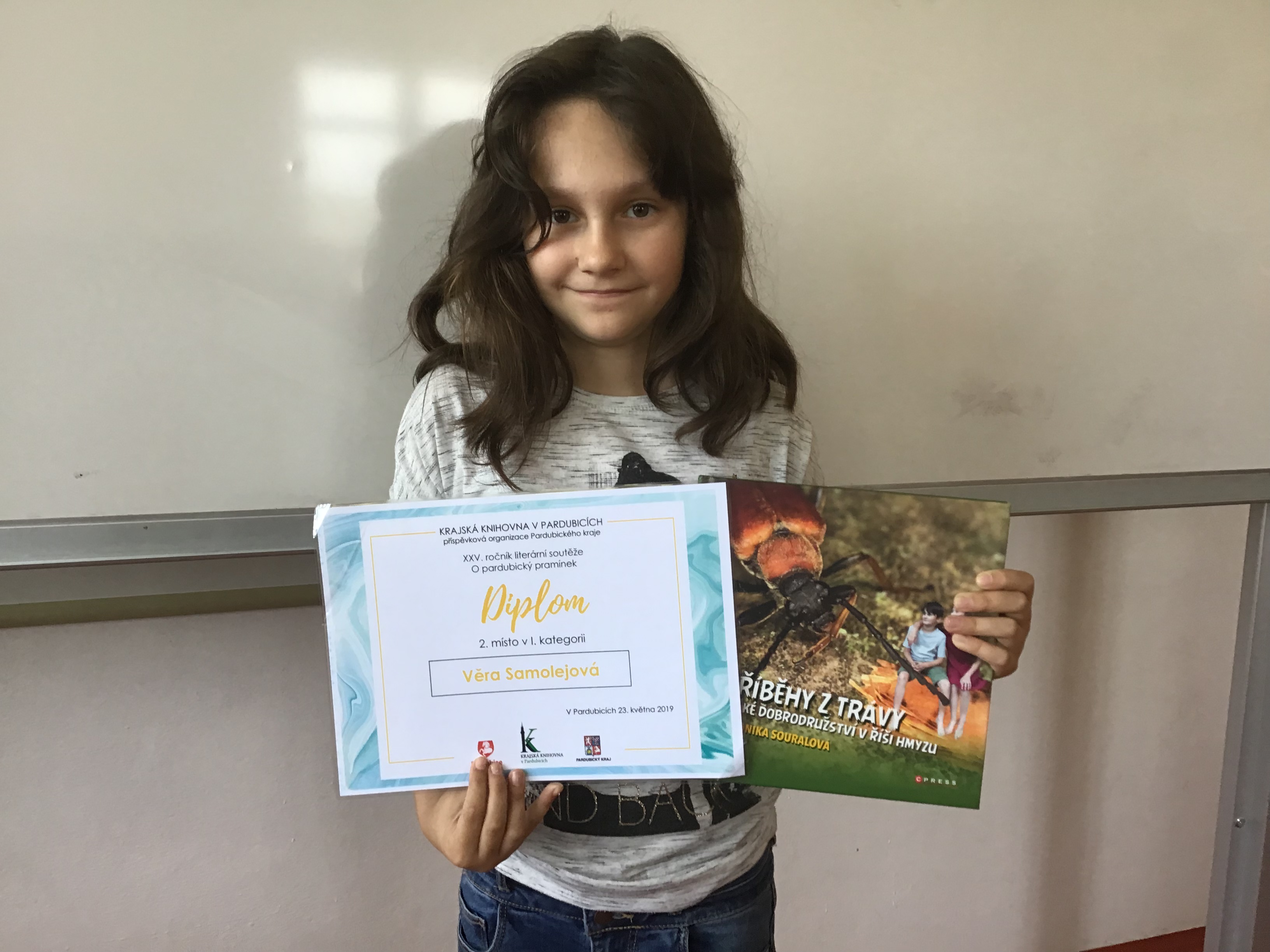Žáci 5. a 6.B třídy se zúčastnili celostátní literární soutěže O pardubický pramínek 2019. Tématem letošního ročníku bylo O čem nejraději sním. Věra Samolejová z 5. třídy se umístila v I. kategorii na 2. místě. Blahopřejeme 🙂