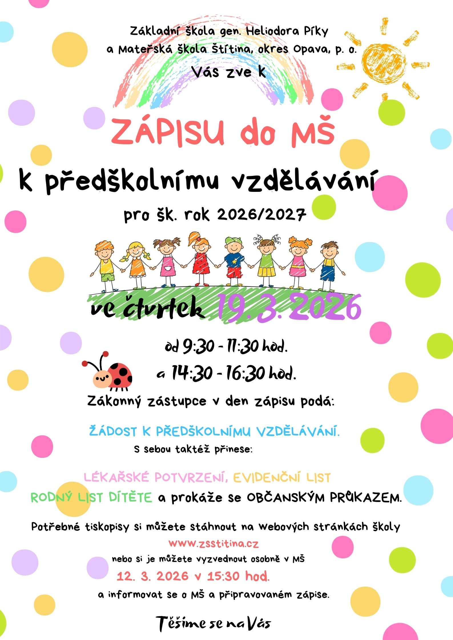 • Informace k zápisu k předškolnímu vzdělávání 2026/2027